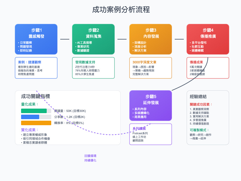 讓我分享一個案例,展示如何從一個簡單的日常觀察,逐步發展成為影響廣泛的內容作品。這個案例不僅展示了靈感管理系統的實際運作,也揭示了優質內容創作的內在邏輯。